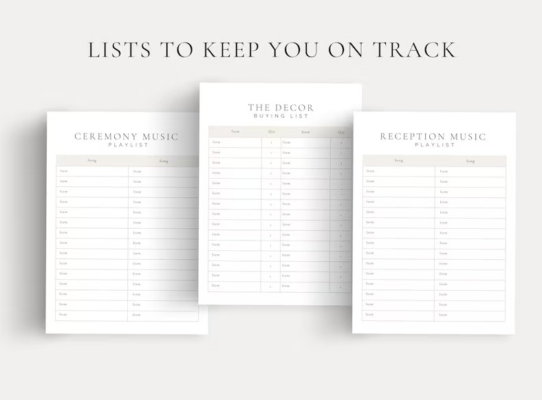A full range of checklists - from photography to emergency contingency plans and everything in-between (even your wedding shoes get a mention)